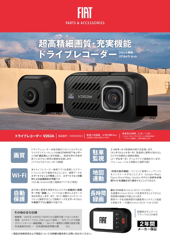 超高精細画質、充実機能搭載の純正ドライブレコーダーで安心のカーライフを(^^)/□画質4K STARVISTMセンサー と140°超広角レンズを搭載□Wi-F...